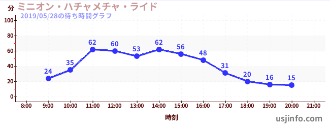 • ミニオン・ハチャメチャ・ライド$B$N(B2019年05月28日の待ち時間