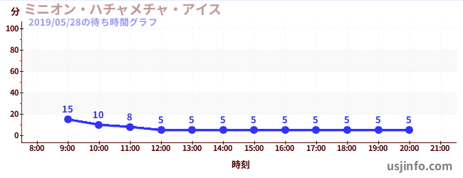 • ミニオン・ハチャメチャ・アイス$B$N(B2019年05月28日の待ち時間