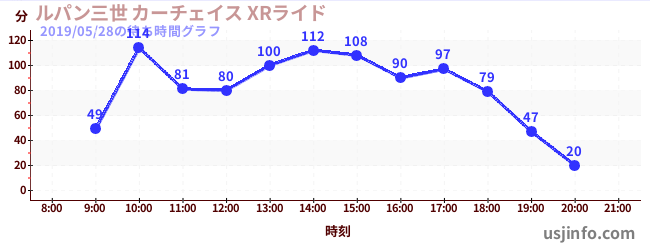 • ルパン三世 カーチェイス XRライド$B$N(B2019年05月28日の待ち時間