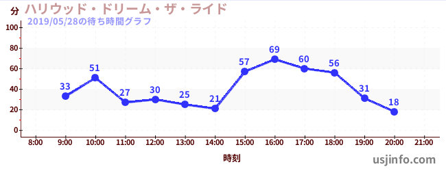 • ハリウッド・ドリーム・ザ・ライド$B$N(B2019年05月28日の待ち時間