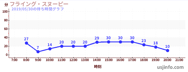 • フライング・スヌーピー$B$N(B2019年05月30日の待ち時間