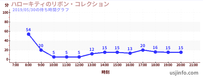 • ハローキティのリボン・コレクション$B$N(B2019年05月30日の待ち時間