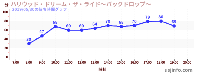 • ハリウッド・ドリーム・ザ・ライド$B$N(B2019年05月30日の待ち時間