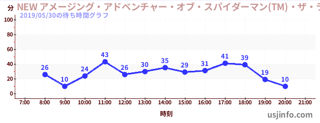 • NEW アメージング・アドベンチャー・オブ・スパイダーマン(TM)・ザ・ライド 4K3D$B$N(B2019年05月30日の待ち時間