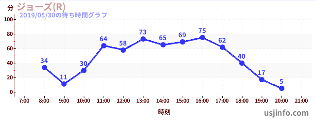 • ジョーズ(R)$B$N(B2019年05月30日の待ち時間