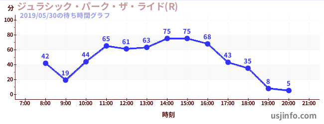 • ジュラシック・パーク・ザ・ライド(R)$B$N(B2019年05月30日の待ち時間