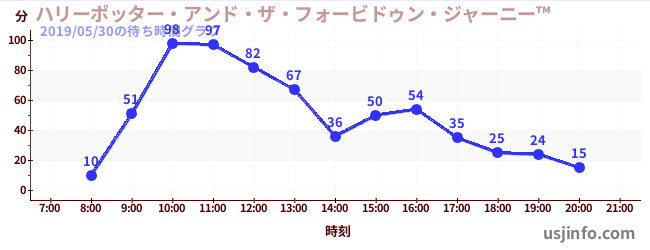 • ハリーポッター・アンド・ザ・フォービドゥン・ジャーニー™$B$N(B2019年05月30日の待ち時間