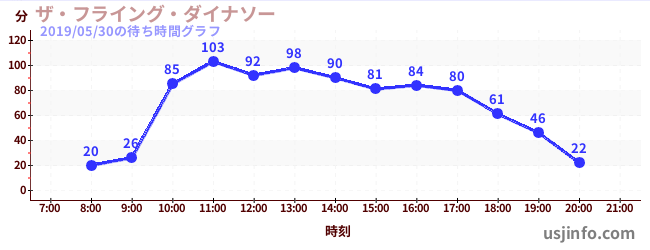 • ザ・フライング・ダイナソー$B$N(B2019年05月30日の待ち時間
