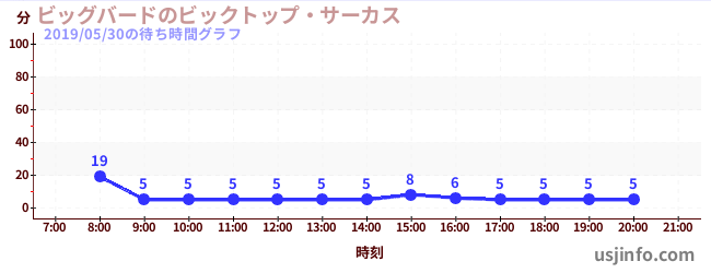 • ビッグバードのビックトップ・サーカス$B$N(B2019年05月30日の待ち時間