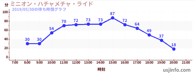 • ミニオン・ハチャメチャ・ライド$B$N(B2019年05月30日の待ち時間