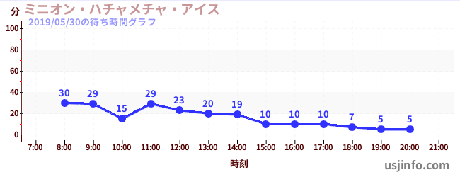• ミニオン・ハチャメチャ・アイス$B$N(B2019年05月30日の待ち時間