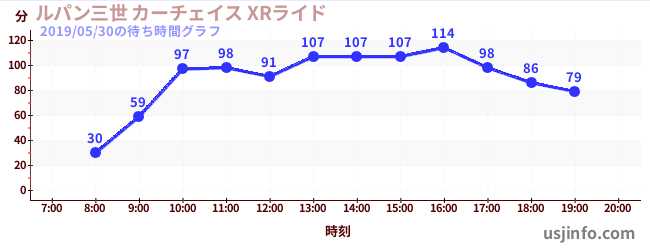 • ルパン三世 カーチェイス XRライド$B$N(B2019年05月30日の待ち時間