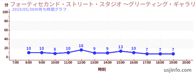 • フォーティセカンド・ストリート・スタジオ ~グリーティング・ギャラリー~ ミニオン$B$N(B2019年05月30日の待ち時間