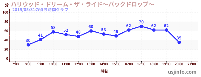 • ハリウッド・ドリーム・ザ・ライド〜バックドロップ〜$B$N(B2019年05月31日の待ち時間