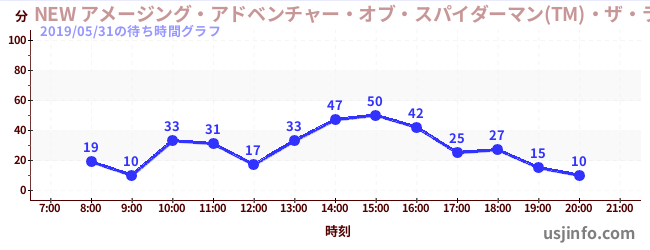 • NEW アメージング・アドベンチャー・オブ・スパイダーマン(TM)・ザ・ライド 4K3D$B$N(B2019年05月31日の待ち時間