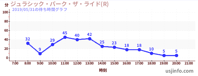 • ジュラシック・パーク・ザ・ライド(R)$B$N(B2019年05月31日の待ち時間