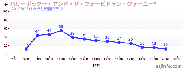 • ハリーポッター・アンド・ザ・フォービドゥン・ジャーニー™$B$N(B2019年05月31日の待ち時間
