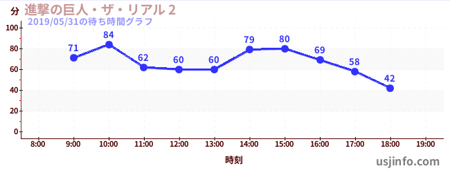 • 進撃の巨人・ザ・リアル 2$B$N(B2019年05月31日の待ち時間