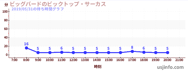 • ビッグバードのビックトップ・サーカス$B$N(B2019年05月31日の待ち時間