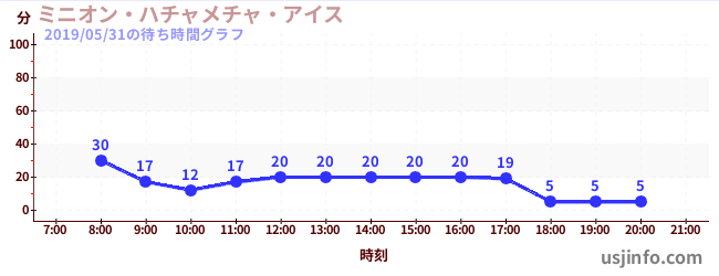 • ミニオン・ハチャメチャ・アイス$B$N(B2019年05月31日の待ち時間