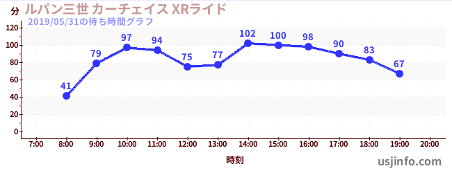 • ルパン三世 カーチェイス XRライド$B$N(B2019年05月31日の待ち時間
