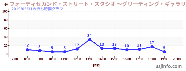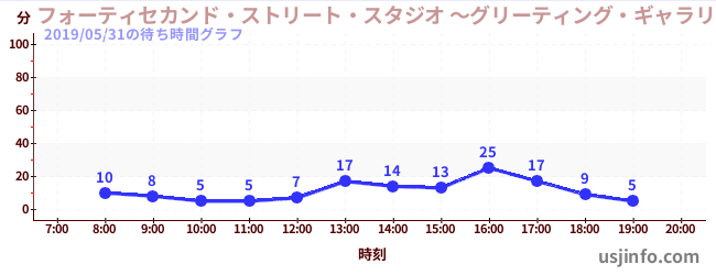 • フォーティセカンド・ストリート・スタジオ ~グリーティング・ギャラリー~ ミニオン$B$N(B2019年05月31日の待ち時間
