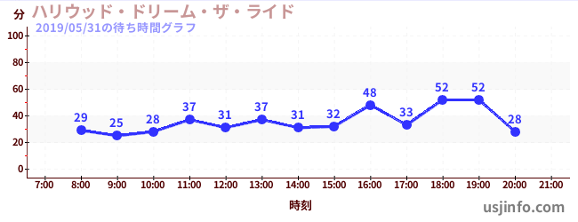 • ハリウッド・ドリーム・ザ・ライド$B$N(B2019年05月31日の待ち時間