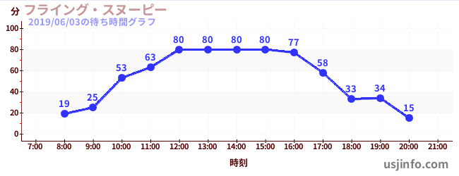 • フライング・スヌーピー$B$N(B2019年06月03日の待ち時間