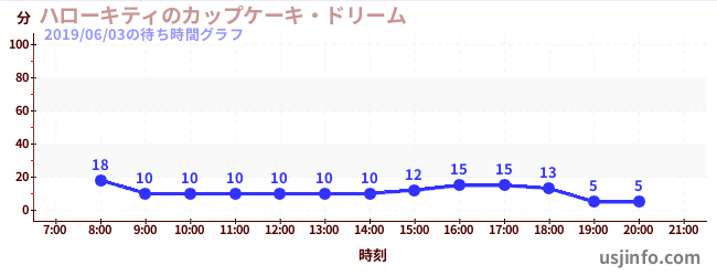 • ハローキティのカップケーキ・ドリーム$B$N(B2019年06月03日の待ち時間