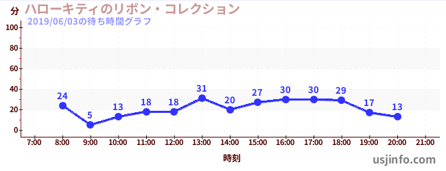 • ハローキティのリボン・コレクション$B$N(B2019年06月03日の待ち時間