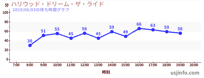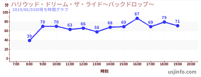 • ハリウッド・ドリーム・ザ・ライド$B$N(B2019年06月03日の待ち時間