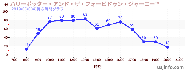 • ハリーポッター・アンド・ザ・フォービドゥン・ジャーニー™$B$N(B2019年06月03日の待ち時間