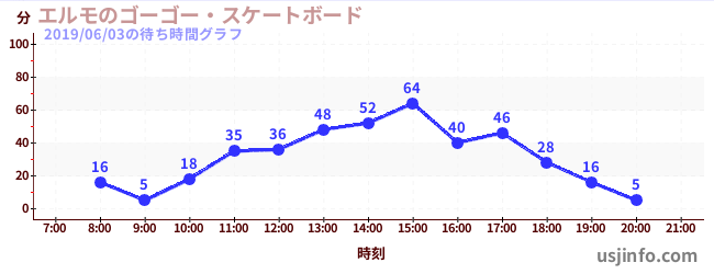 • エルモのゴーゴー・スケートボード$B$N(B2019年06月03日の待ち時間