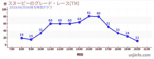 • スヌーピーのグレード・レース(TM)$B$N(B2019年06月03日の待ち時間