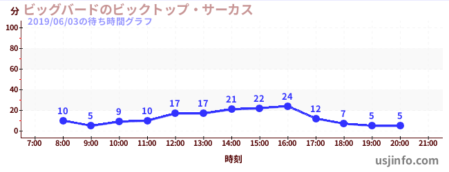 • ビッグバードのビックトップ・サーカス$B$N(B2019年06月03日の待ち時間