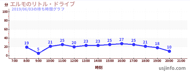 • エルモのリトル・ドライブ$B$N(B2019年06月03日の待ち時間