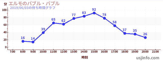 • エルモのバブル・バブル$B$N(B2019年06月03日の待ち時間