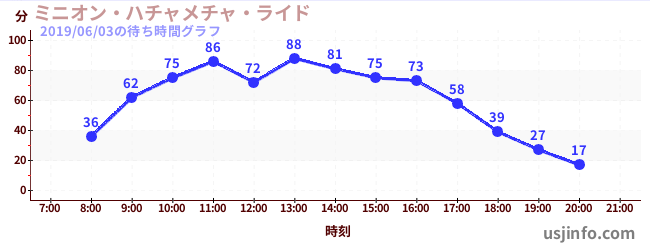 • ミニオン・ハチャメチャ・ライド$B$N(B2019年06月03日の待ち時間