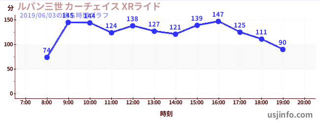 • ルパン三世 カーチェイス XRライド$B$N(B2019年06月03日の待ち時間