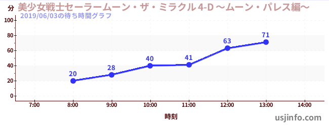 • 美少女戦士セーラームーン・ザ・ミラクル 4-D ~ムーン・パレス編~$B$N(B2019年06月03日の待ち時間