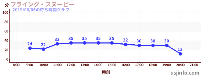 • フライング・スヌーピー$B$N(B2019年06月06日の待ち時間
