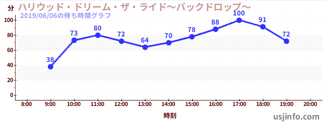 • ハリウッド・ドリーム・ザ・ライド〜バックドロップ〜$B$N(B2019年06月06日の待ち時間