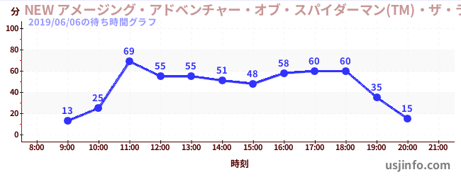 • NEW アメージング・アドベンチャー・オブ・スパイダーマン(TM)・ザ・ライド 4K3D$B$N(B2019年06月06日の待ち時間