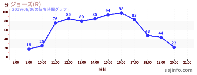• ジョーズ(R)$B$N(B2019年06月06日の待ち時間