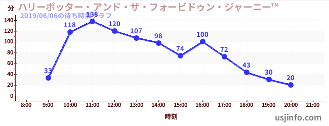 • ハリーポッター・アンド・ザ・フォービドゥン・ジャーニー™$B$N(B2019年06月06日の待ち時間