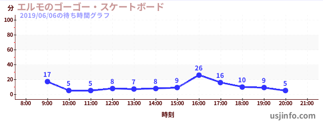 • エルモのゴーゴー・スケートボード$B$N(B2019年06月06日の待ち時間