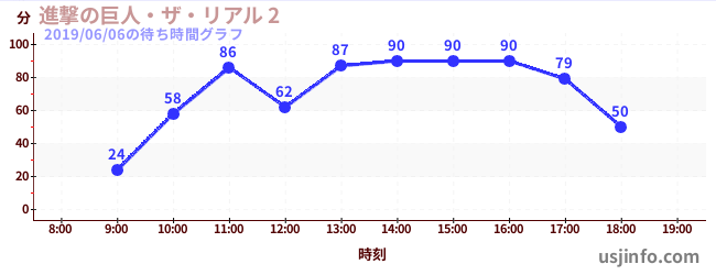 • 進撃の巨人・ザ・リアル 2$B$N(B2019年06月06日の待ち時間