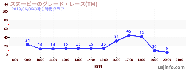 • スヌーピーのグレード・レース(TM)$B$N(B2019年06月06日の待ち時間