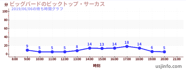 • ビッグバードのビックトップ・サーカス$B$N(B2019年06月06日の待ち時間