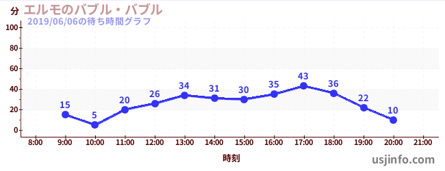 • エルモのバブル・バブル$B$N(B2019年06月06日の待ち時間